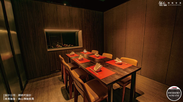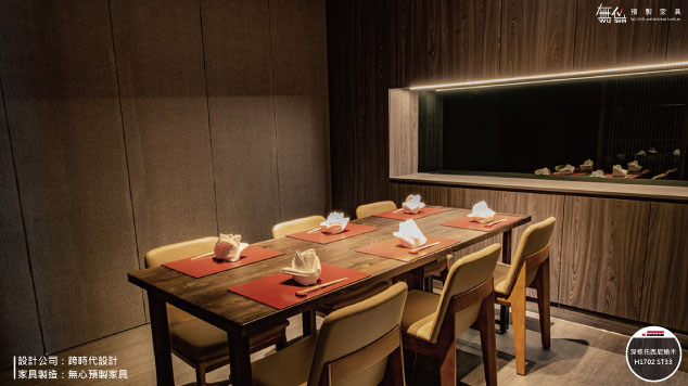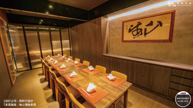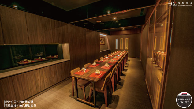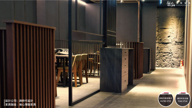 無心預製家具幫助設計師製造餐廳內大量的家具櫃體及數位打型,在整體設計當中系統家具作為室內設計其實都只算是一小部分~如同莞固和食細膩的呈現大阪正統關西日本料理,無心預製家具用數位家具製造的專業,協助設計師一層一層堆疊出日式的風格設計~最重要的還是要將店家最好最美的地方呈現給客人,以來自大阪正統關西日本料理,希望客人們都能享受到日本がんこ真正美味幸福的傳統和食滋味,就算不出國也能在莞固感受到濃濃日本氛圍~
